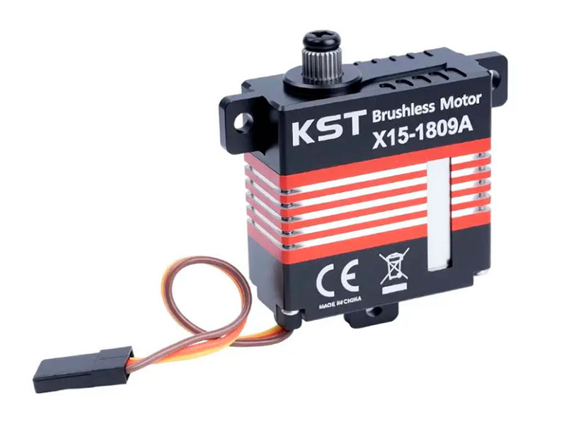 Цифровая скоростная мини сервомашинка KST X15-1809 V8.0 HV с бесколлекторным мотором и стальным редуктором. Корпус выполнен полностью из алюминия, который обеспечивает эффективное рассеивание тепла.