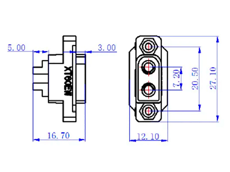 Силовой разъем-вилка Amass XT60EW-M (XT60EW-M.G.B) "папа" для установки на плату или корпус. Разъём XT60EW-M предназначен для подключения разъёмов XT60W-F с уплотнителем. Также, подходит и для подключения обычных XT60.