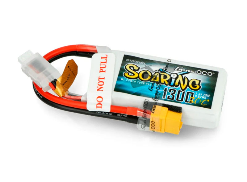 Артикул: BSR30C13002S LiPo аккумуляторная батарея GensAce Soaring 2S1P 1300mAh 7.4V 30C GEA13002S30X6 с разъемом XT60. Размер: 69.5x34x14.5 мм.Вес: 79 гр.