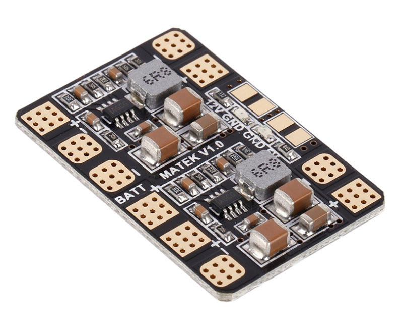 Выход 5V предназначен для питания приёмника, полётного контроллера, светодиодов, 12V - для видеопередатчика, FPV-камеры и т.п. нет в наличии Артикул: MATEK-FC-109 Тип: Платы питания, регуляторы напряжения и BEC