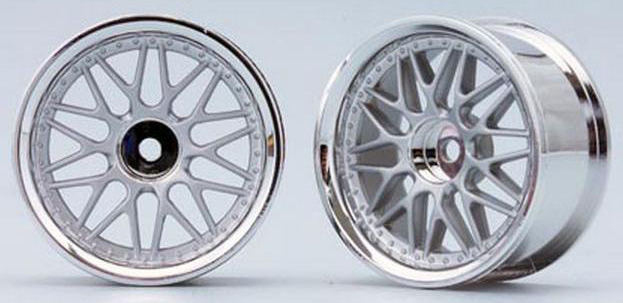 Серебристые колёсные диски Yokomo Mesh 10-спицевые для шоссейных и дрифтовых радиоуправляемых моделей масштаба 1/10.