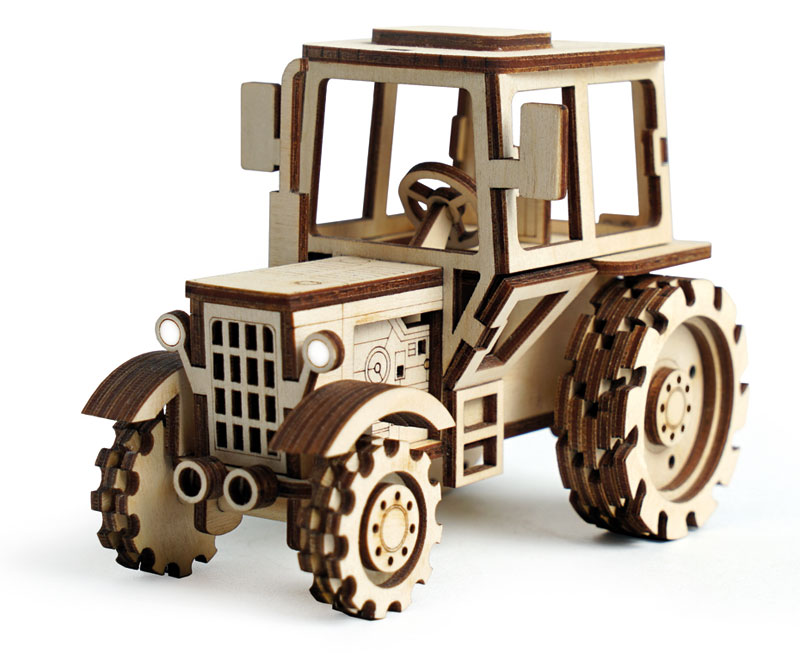 Конструктор 3D деревянный подвижный Lemmo "Трактор". У собранного трактора крутятся колеса. Абсолютно все детали конструктора Леммо выполнены из дерева. При желании игрушку можно раскрасить красками.
