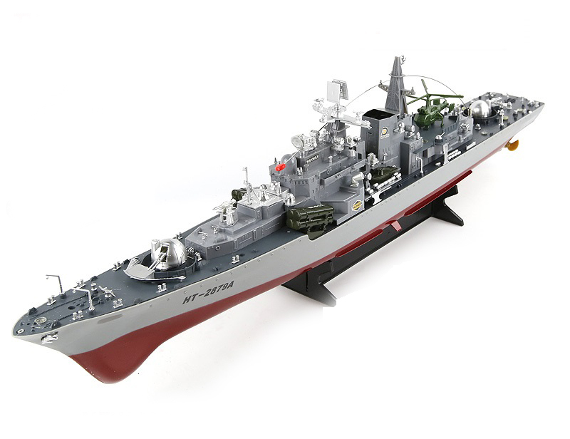 Радиоуправляемый военный катер HengTai Destroyer Stealth Missile Frigate HT-3831A в масштабе 1:275. Модель управляется с помощью полнофункционального пульта дистанционного управления, радиус действия которого составляет до 50 метров. Корабль оснащен двумя мощными электродвигателями, которые контролируют работу двух винтов.