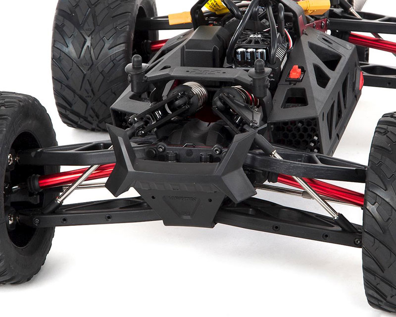 Мощный бесколлекторный мотор Arrma BLX4075 2000kV, работающий от 22.2V (6S LiPo), способен разогнать машину свыше 96 км/ч.