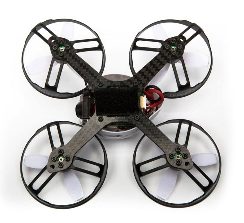 Защита на пропеллерах позволяет без опаски запускать модель в комнате, а бесколлекторные двигатели с высоким крутящим моментом обеспечивают достаточную мощность для впечатляющих полетов на улице. Рама толщиной 2 мм. из углеволокна повышает прочность конструкции, а видеопередатчик 150мВт обеспечивает четкую видеопередачу в любых условиях. Камера 600TVL с углом обзора 120° обеспечивает отличный обзор в небольших помещениях и на улице. Полетный контроллер Betaflight F3 позволяет настроить полетные характеристики в соответствии с личными предпочтениями, а последовательный приемник Spektrum с телеметрией передает ключевую информацию о полете.