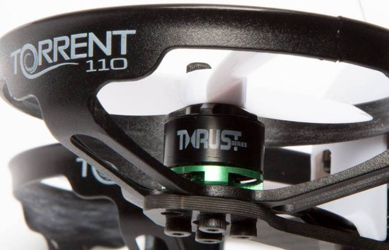 Миниатюрный радиоуправляемый гоночный квадрокоптер Blade Torrent 110 FPV, оснащённый бесколлекторными моторами Blade Thrust 1104 7600kV. Мощный и маневренный FPV-коптер длиной 100 мм. можно запускать на улице и в помещении, и он с лёгкостью поместится в кармане.