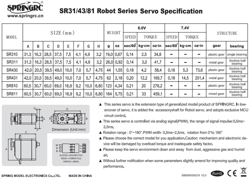 Артикул: SM-SR811Большой аналоговый сервопривод SpringRC SR811 с металлическим редуктором и углом поворота до 180 градусов для роботов. Сервомотор SpringRC SR811 имеет в нижней площадке корпуса специальное отверстие и дополнительный вал.