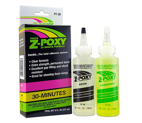 Эпоксидный клей Pacer Zap Z-Poxy PT-39, время застывания 15 минут, окончательная полимеризация наступает после 30 минут. Применяется для склеивания дерева, пенопласта, пластика, металлов и т.д. Идеально подходит для приклеивания деревянных шпангоутов к пластиковому корпусу модели. Он незаменим при склеивании высоконагруженных деталей.