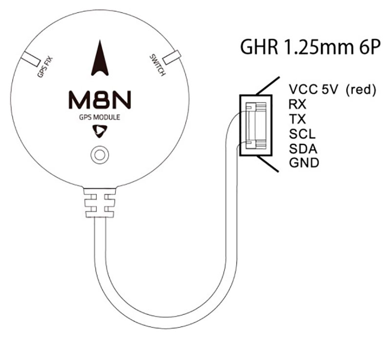 Второй модуль GPS Holybro Ublox Neo-M8N с компасом IST8310 для полётных контроллеров Pixhawk 4. Оснащён 6-пиновым разъёмом GHR1.25 мм. Подключается к портам "UART & I2C" или "GPS2".