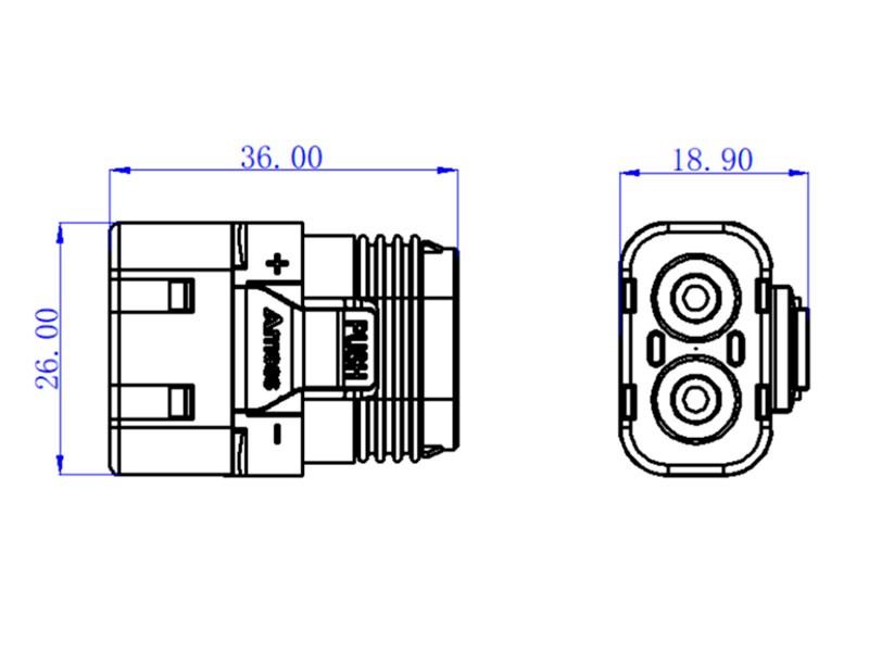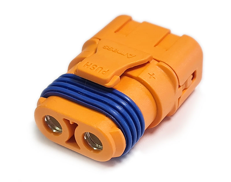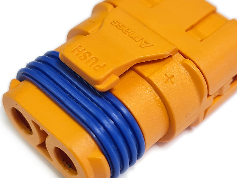 Оригинальный влагозащищённый силовой разъем Amass LFB50-F 5.0 мм. "мама" c защёлкой на корпусе. Медный проводник покрыт серебром, что значительно повышает эффективность передачи тока.
