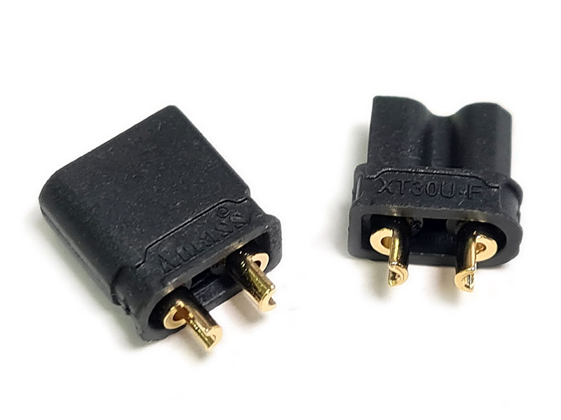 Артикул: AM-XT30U.BКомплект (пара) оригинальных силовых разъемов Amass XT30U (мама XT30U-F и папа XT30U-M) 2 мм. Цвет: чёрный.